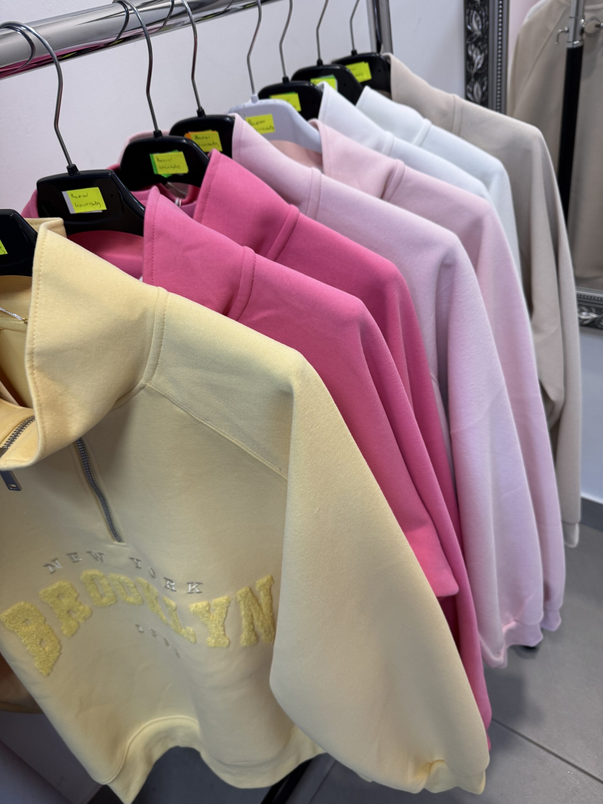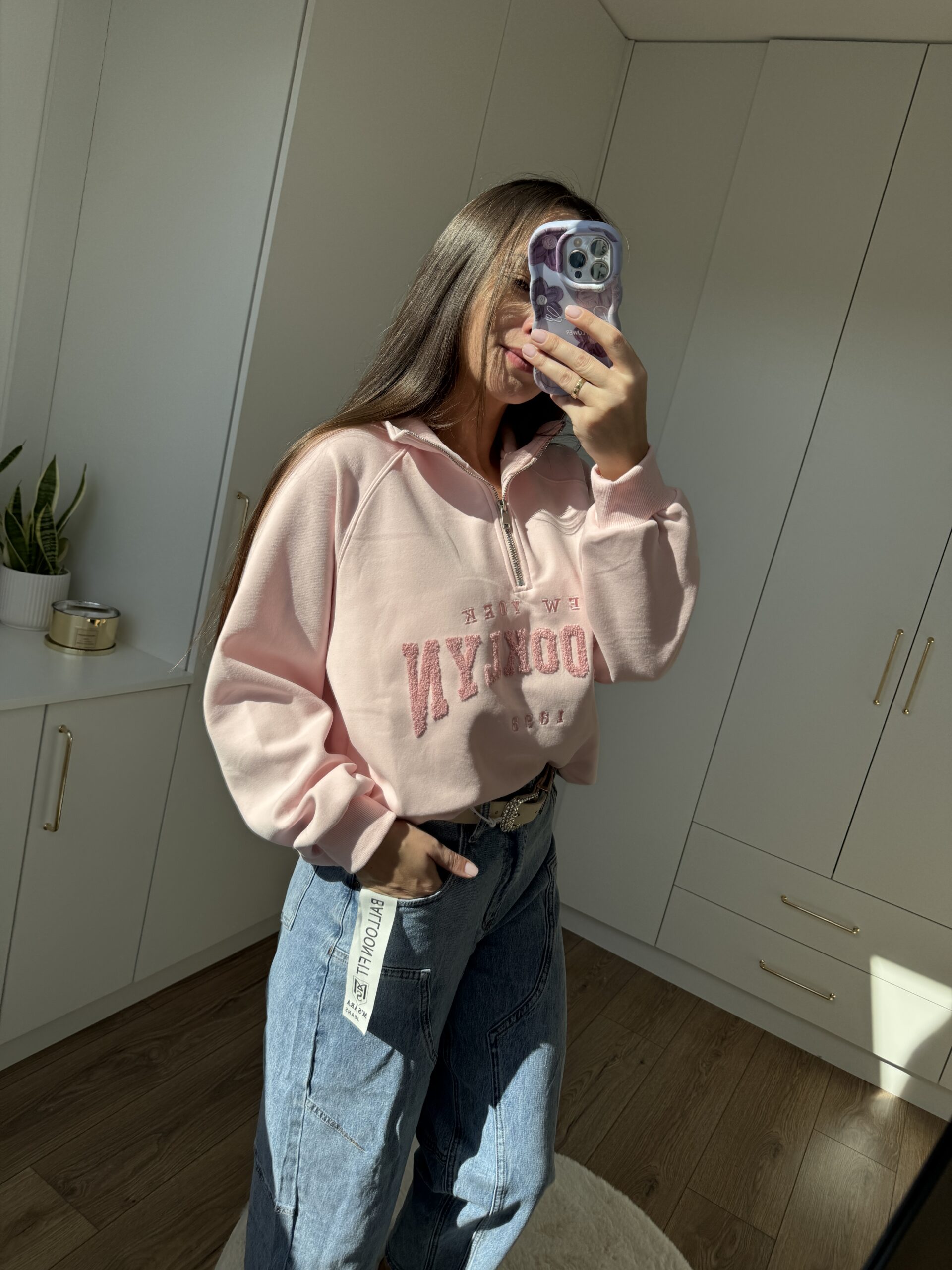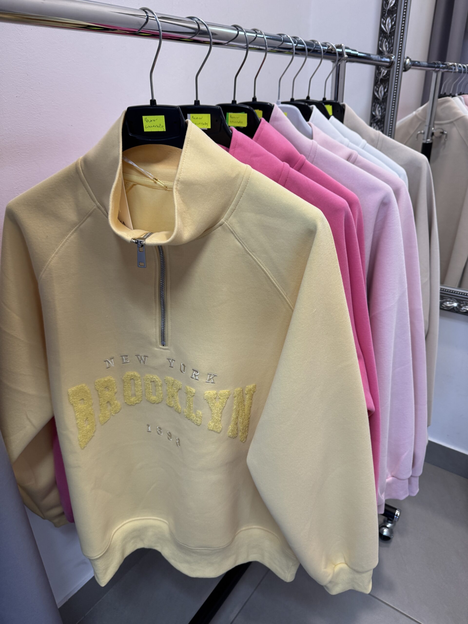 Bluza BROOKLYN to idealne połączenie sportowego luzu z kobiecym, pastelowym kolorem. Wykonana z wysokiej jakości dzianiny z przewagą bawełny, zapewnia komfort i miękkość, których szukasz na co dzień. Charakterystyczny haft z przodu oraz praktyczny suwak przy dekolcie nadają jej nowoczesnego charakteru.